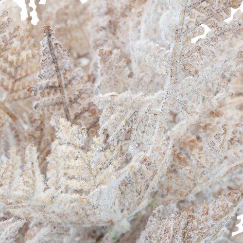 This artificial flower bouquet made of artificial fern comes in autumnal brown, which immediately looks wintery frosted thanks to the flocking of the leaves in white.The bouquet of artificial plants made from fern leaves is perfect for a frosty winter decoration! Combine the decorative fern with other autumn branches such as lantern flowers and decorative leaves.