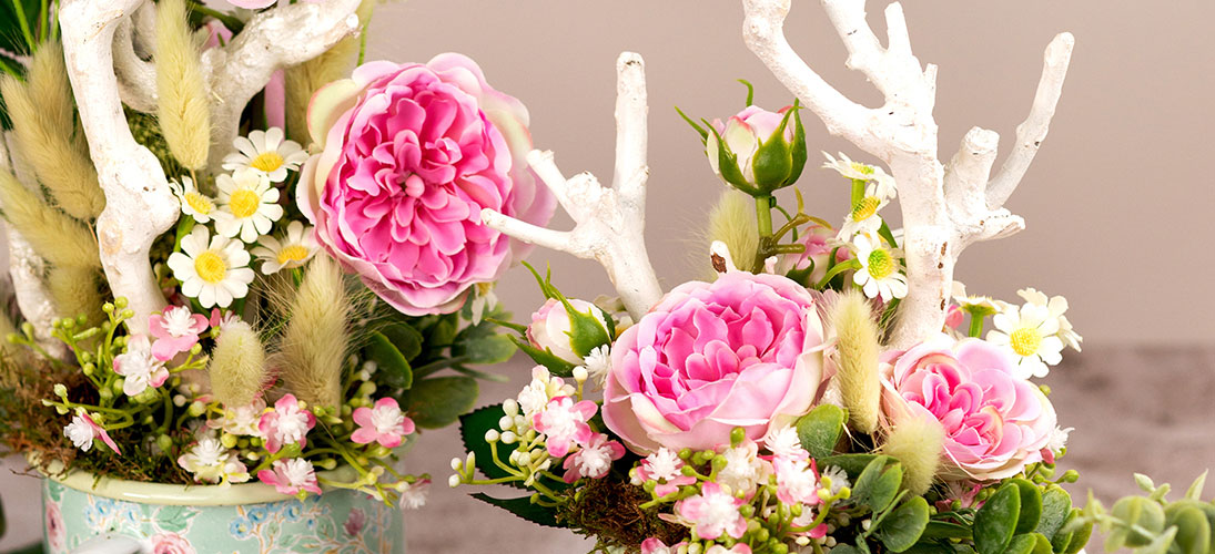 For example, place artificial green plants on table runners for a festive dinner and add silk roses and artificial flowers. Of course, you can also create an artificial flower bouquet, an arrangement made of green plants, a funeral arrangement or a wedding bouquet that will alwasy look fresh and green even on hot summer days.Be it an artificial rosemary branch, a trendy bunch of eucalyptus or lifelike branch full of berries, artificial plants are so manifold that you can realise any DiY idea without any compromises at all!
