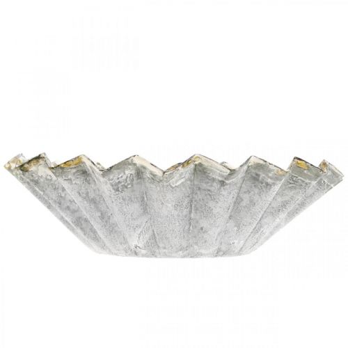 This small cake pan for planting is a wonderful metal decoration for various occasions. Made of metal and washed white, the rustic baking dish with gold decor on the typical jagged edge captivates.The decorative plate as a cake pan can be used all year round on festive occasions such as birthdays, as a wedding decoration or as an attractive table decoration in Advent. Use the metal plate as a candle plate or decorate small arrangements in the decorative baking pan with a little floral foam. You can also use small plants in the metal baking tin as table decorations or as gifts. Or you can create a Christmas decoration in the spirit of a patisserie or small bakery by placing the small decorative cakes on the metal molds in shabby chic. - In our shop you will find a large assortment of small cakes and pastry dummies to decorate.