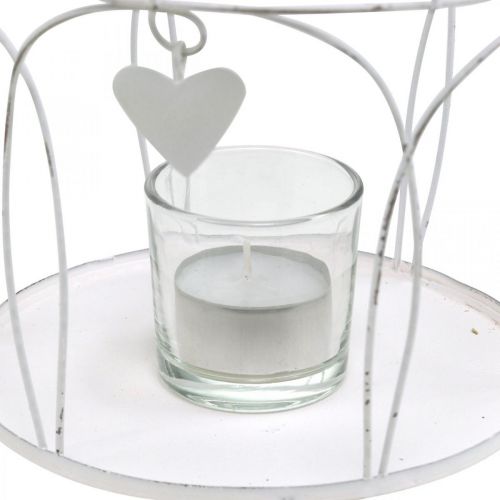 Crown with heart decor, tealight holder, shabby chic white Ø19cm H28.5cm