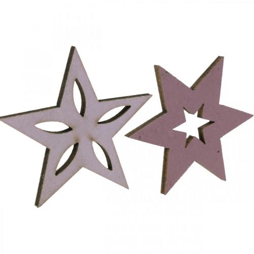 Deco wood stars purple poinsettias self-adhesive 4cm mix 36pcs