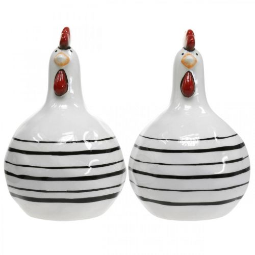 Decorative chicken black and white striped ceramic figure Easter H17cm 2pcs