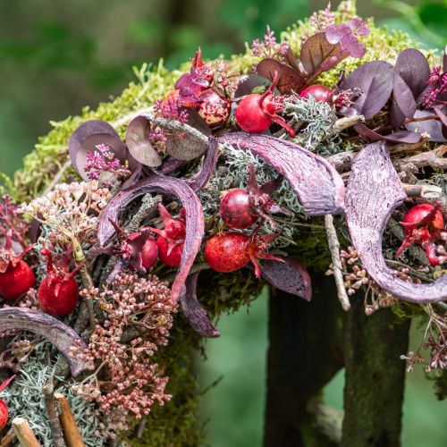 The high-quality natural decoration is also available for a colorful autumn arrangement in our shop as natural moss in dark green, red and orange.