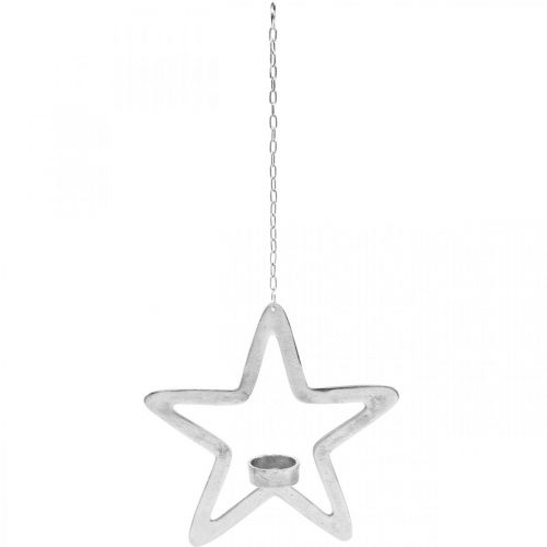 Decorative star tealight holder metal for hanging silver 24cm