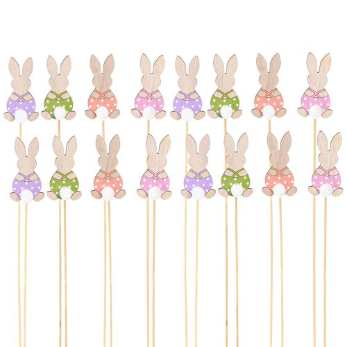 Flower Stick Colorful Bunny Wooden Decoration Easter 6cm 12 pcs