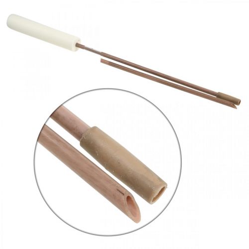 On top of the solar candle is a removable solar panel with the on/off switch on the bottom. To put the garden light into operation, unplug the LED with the panel, set the switch to ON and put the LED back on the candle with the skewer. Let the solar light charge in a sunny place for a day or two. The LED lamp then starts to shine for six to eight hours when darkness falls and then switches off again.
