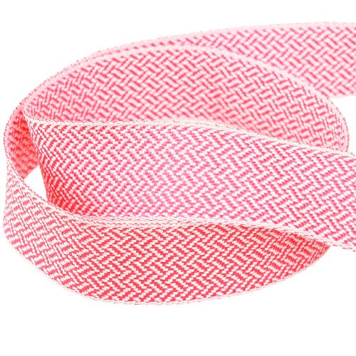 Gift Ribbon Herringbone Pattern Ribbon White Pink 25mm 15m