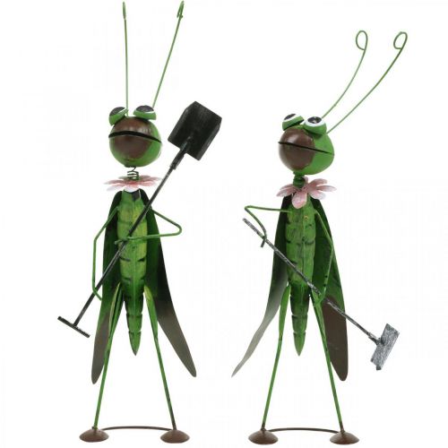 Grasshopper Garden Figurine Metal Decoration Cricket with Rake and Spade H33cm Set of 2