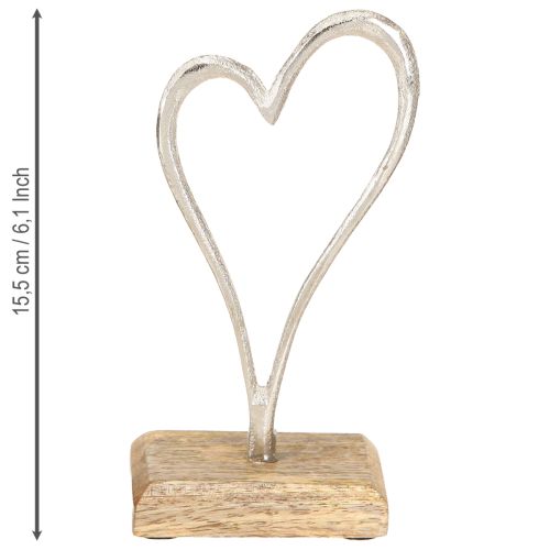 The heart decoration made of metal and wood is an exquisite choice to enrich your living space with stylish and romantic accents. This charming heart decoration combines the robust elegance of metal with the warm naturalness of a wooden base, making it a versatile accessory for any interior. The asymmetrical and curved heart shape gives any room a truly unique aesthetic. Ideal for table decoration in spring or summer, this elegant decorative heart can stand on a decorative tray with flower arrangements or on its own as the center of attention. Whether as a romantic accent in the bedroom or as a charming window sill decoration - this silver-colored heart decoration is guaranteed to attract everyone's attention. Combine it with other decorative items from our shop such as dried flowers or decorative ribbons from Floristik24 to create a harmonious decorative ensemble.