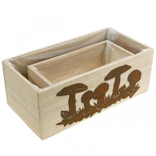 Product name: Plant box set, wooden boxes with mushrooms, autumn decoration, stainless steel L40 / 30cm, set of 2