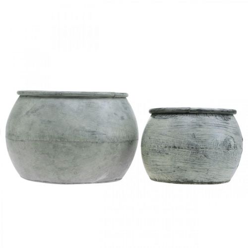 Round metal pot, decorative vessel, plant bowl silver, washed white, antique look Ø25.5 / 18cm H17 / 13cm, set of 2