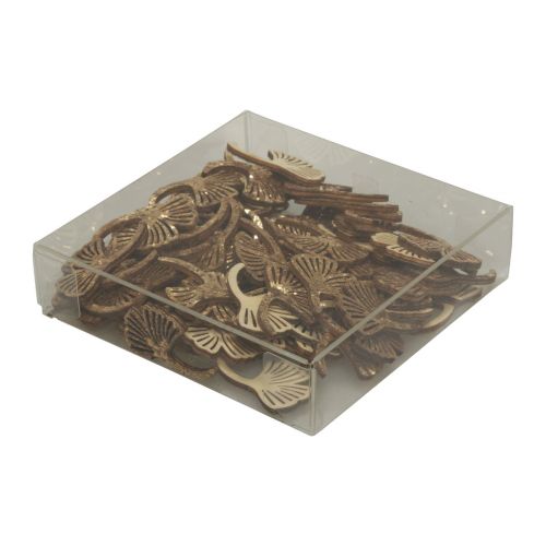 Lay the scatter decoration on the table or dresser to give your furniture a glamorous look. You can also stick the wooden scatter pieces to gifts or pots, bowls or vases covered with fabric. A thread can also be pulled through the slits in the wooden gingko leaf. So you can also use the scatter decoration in gold as a pendant.