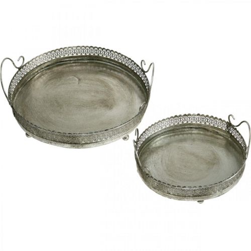 Vintage tray, decorative tray silver, candle tray H6cm Ø31/24cm set of 2