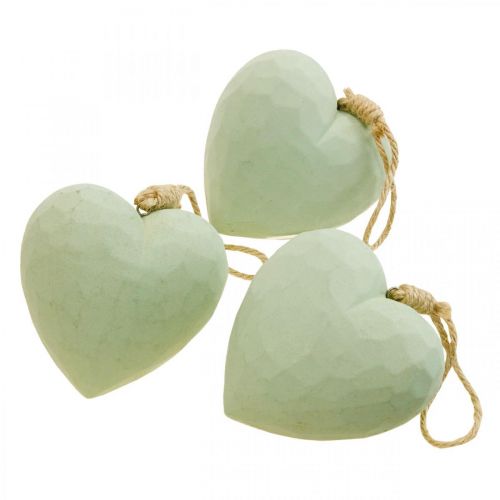Wooden Heart Decoration Hanging Heart Made of Wood Decoration Green 12cm 3 Pcs