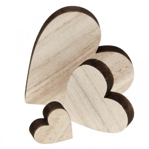 While the surface of the wooden hearts is natural, the edges are designed in a matching dark brown color. This contrast gives the heart decoration for scattering its quaint, rustic charm.