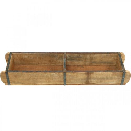 Wooden planter with metal fittings, double brick shape, vintage planter L57cm