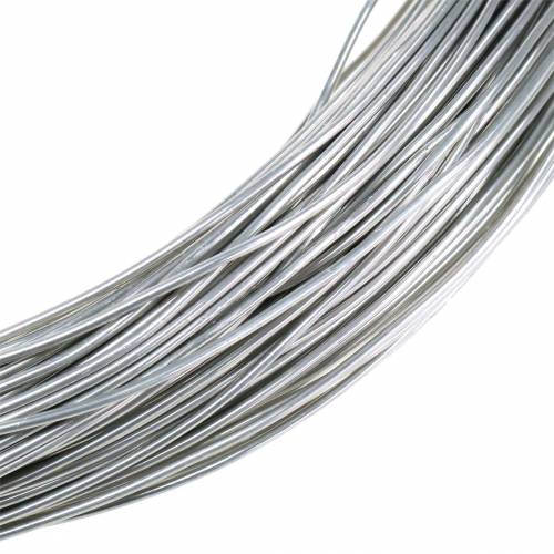 The aluminum wire in silver has a diameter of around 2 millimeters and weighs around 1 kilogram. You receive the wire on a practical roll, from which you can always cut the exact length you need.