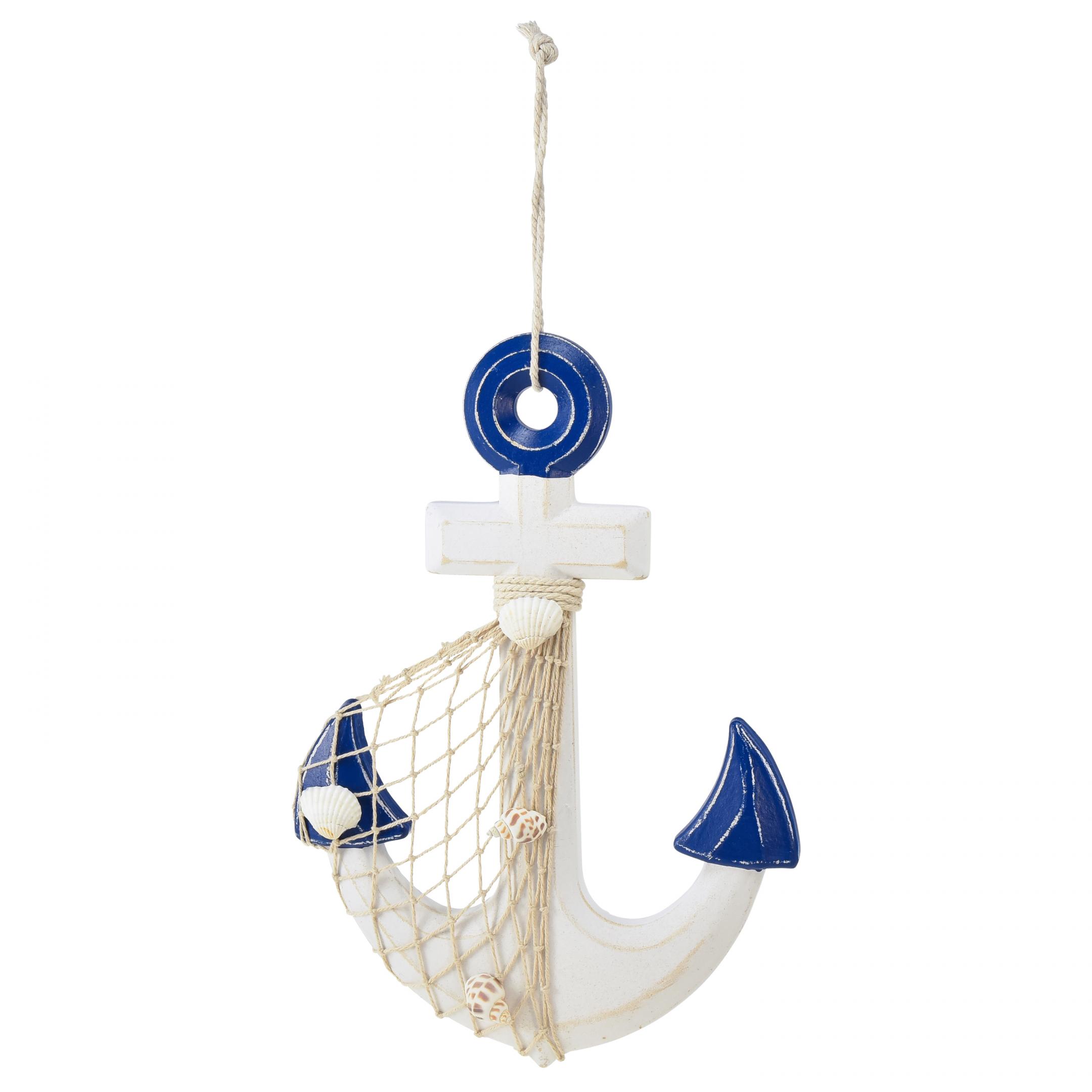 Anchor decoration wooden hanging white blue natural 32x2.5x22cm