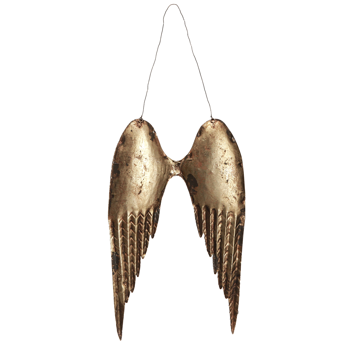 Add a touch of elegance to your home with these exquisite hanging angel wings. Made from high-quality metal with a stunning antique gold finish and signs of aging, the wings offer a wide range of uses - whether as a metal wall decoration or as a door decoration.