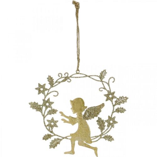 Product name: Angel wreath, Christmas decoration, angel to hang, metal pendant Golden H14cm W15.5