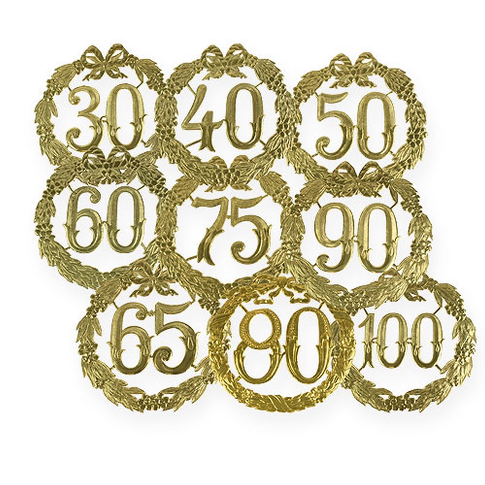 The golden anniversary numbers are each around 24 centimeters in diameter. We have a large selection of anniversary numbers in gold ready for you: Simply click on the "Product Variations" tab and order the appropriate fixed number from the comfort of your own home!