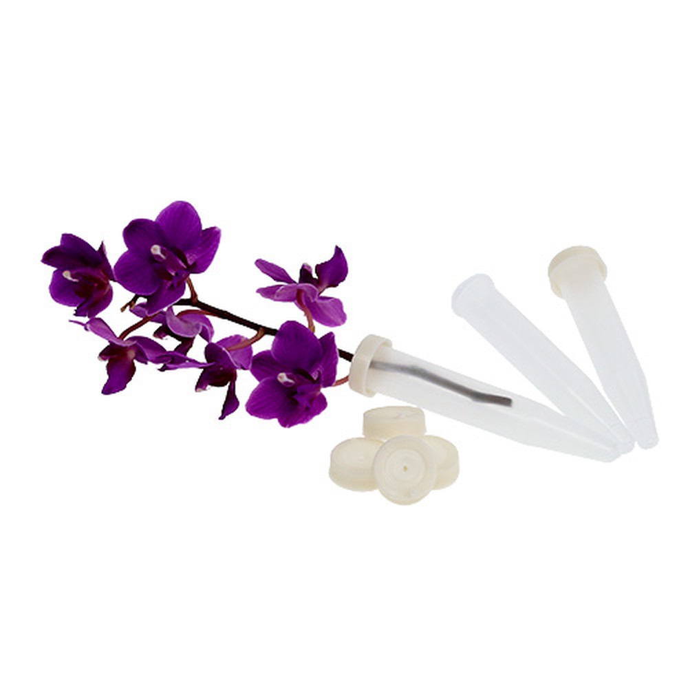 One pack contains 100 tubes and lids. The plastic tubes are about 7.5 centimeters long and have an inside diameter of about 1.2 centimeters. You can also combine dry floristry with cut flowers - your dry arrangements get a fascinating liveliness by inserting a fresh orchid!