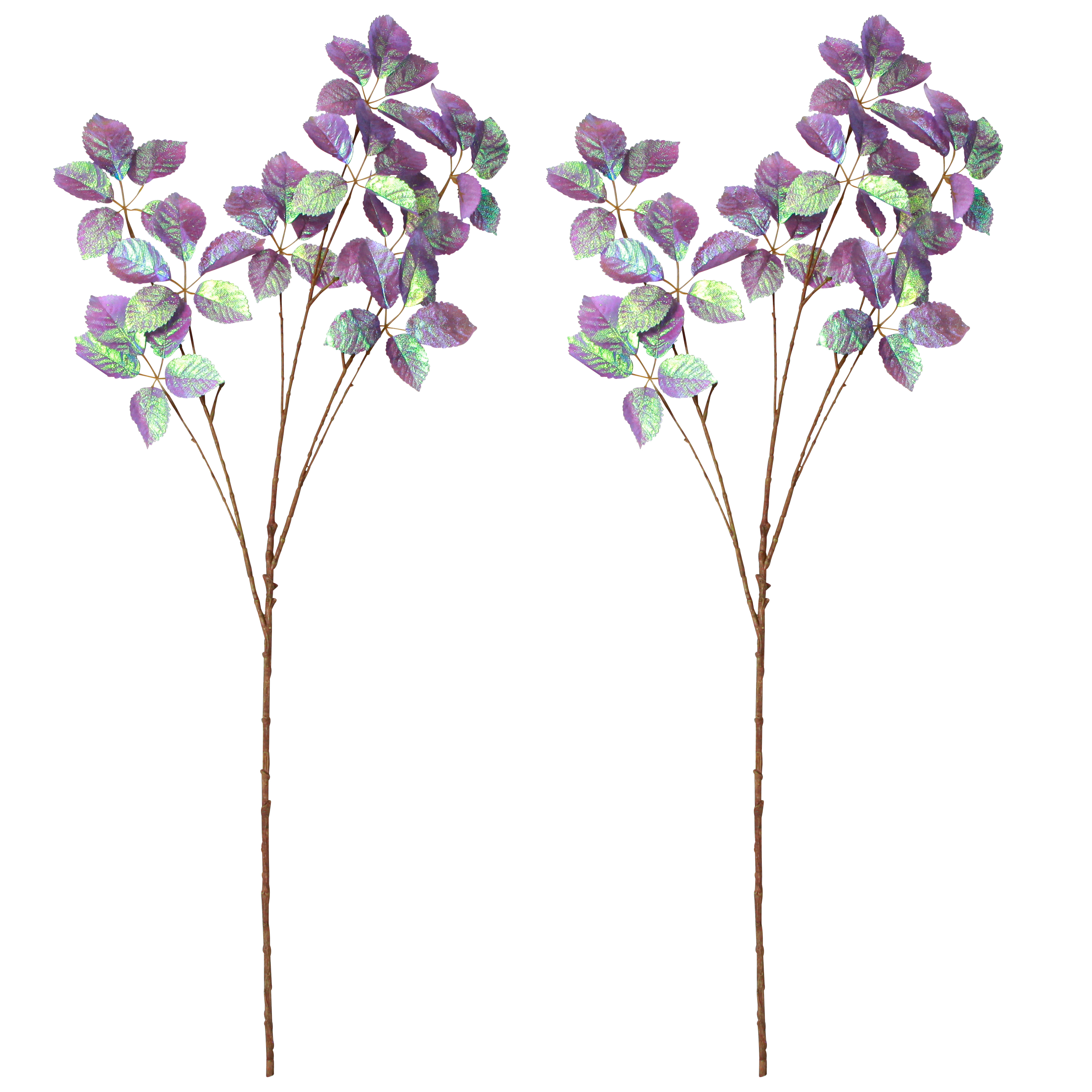 Artificial Branch Leaves Decoration Violet Metallic L103cm 2pcs