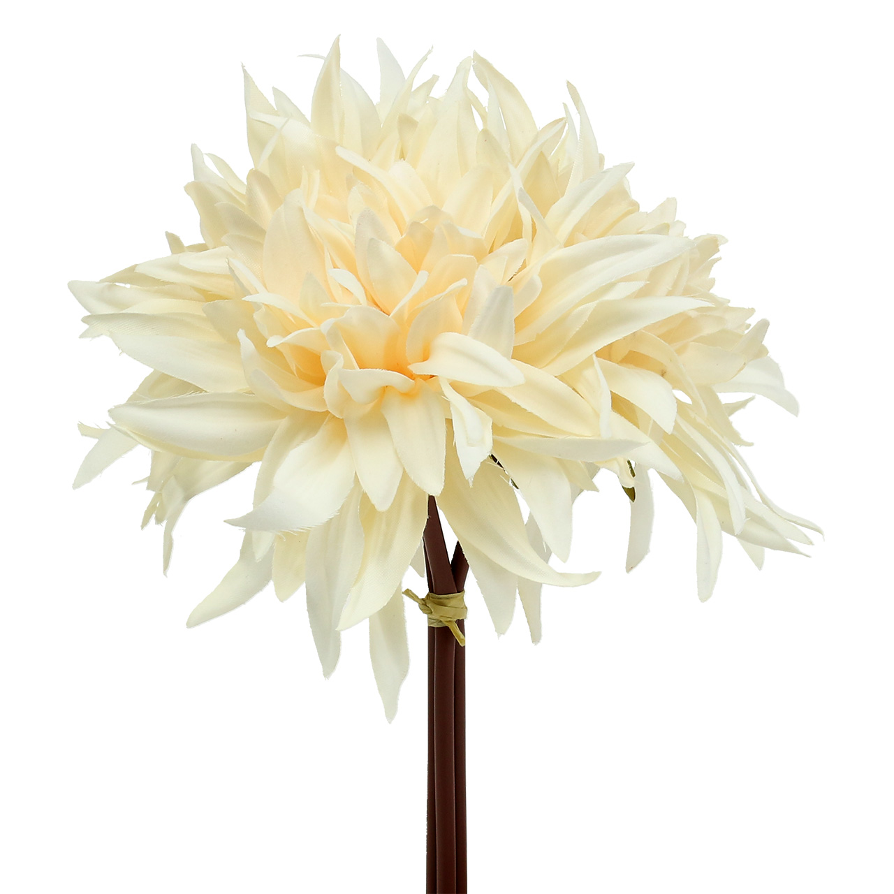 Each artificial dahlia in cream has a flower diameter of around 17.5 centimeters and is around 25.5 centimeters long.