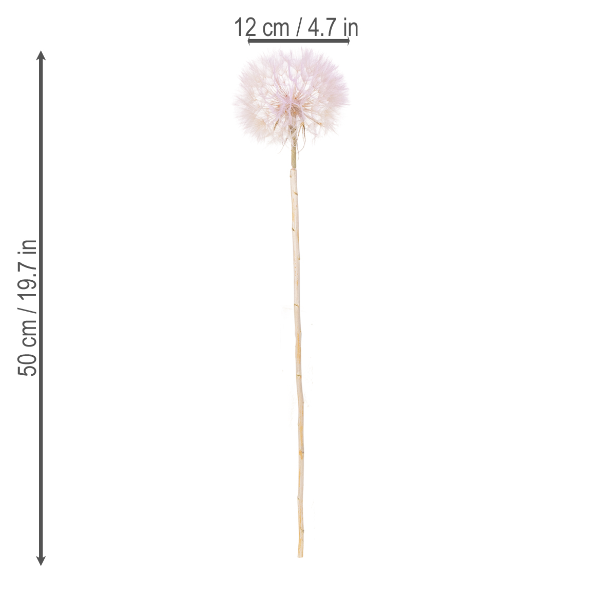 This artificial dandelion decoration impresses with its excellent quality and timeless design. Standing 50 cm tall and 12 cm in diameter, these stylish flowers are ideal for vases or as an addition to modern arrangements. Their delicate pink hue stands out beautifully and harmonizes perfectly with interior design trends such as Scandinavian, Japandi, or Minimalism. It also creates an elegant effect when combined with natural materials like wood or stone.