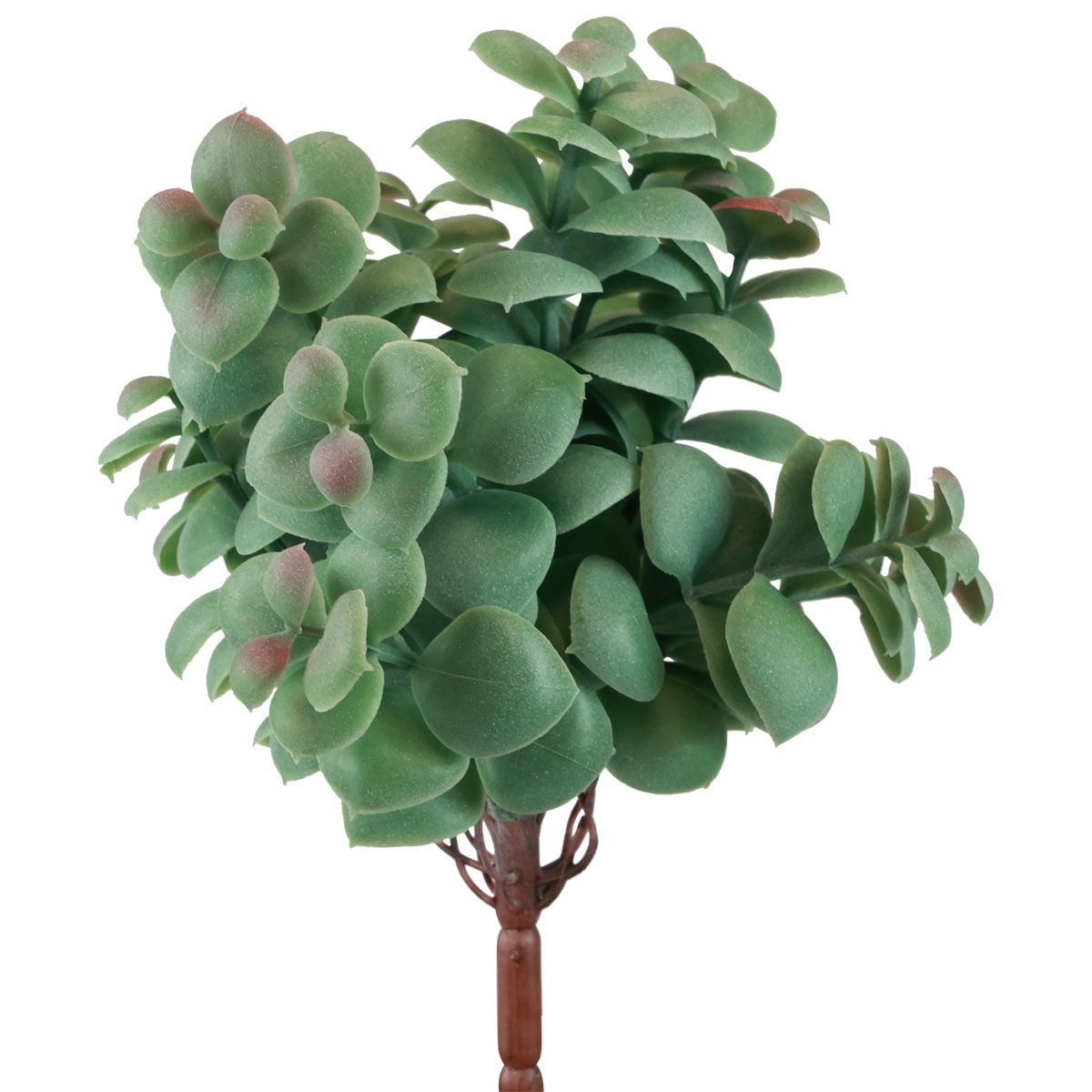The differently sized leaves are precisely shaped and colored in a delicately nuanced green. The soft pink tips of the artificial green plants complete the illusion of a real succulent. The artificial plants can be wired or plugged into the brown pick.