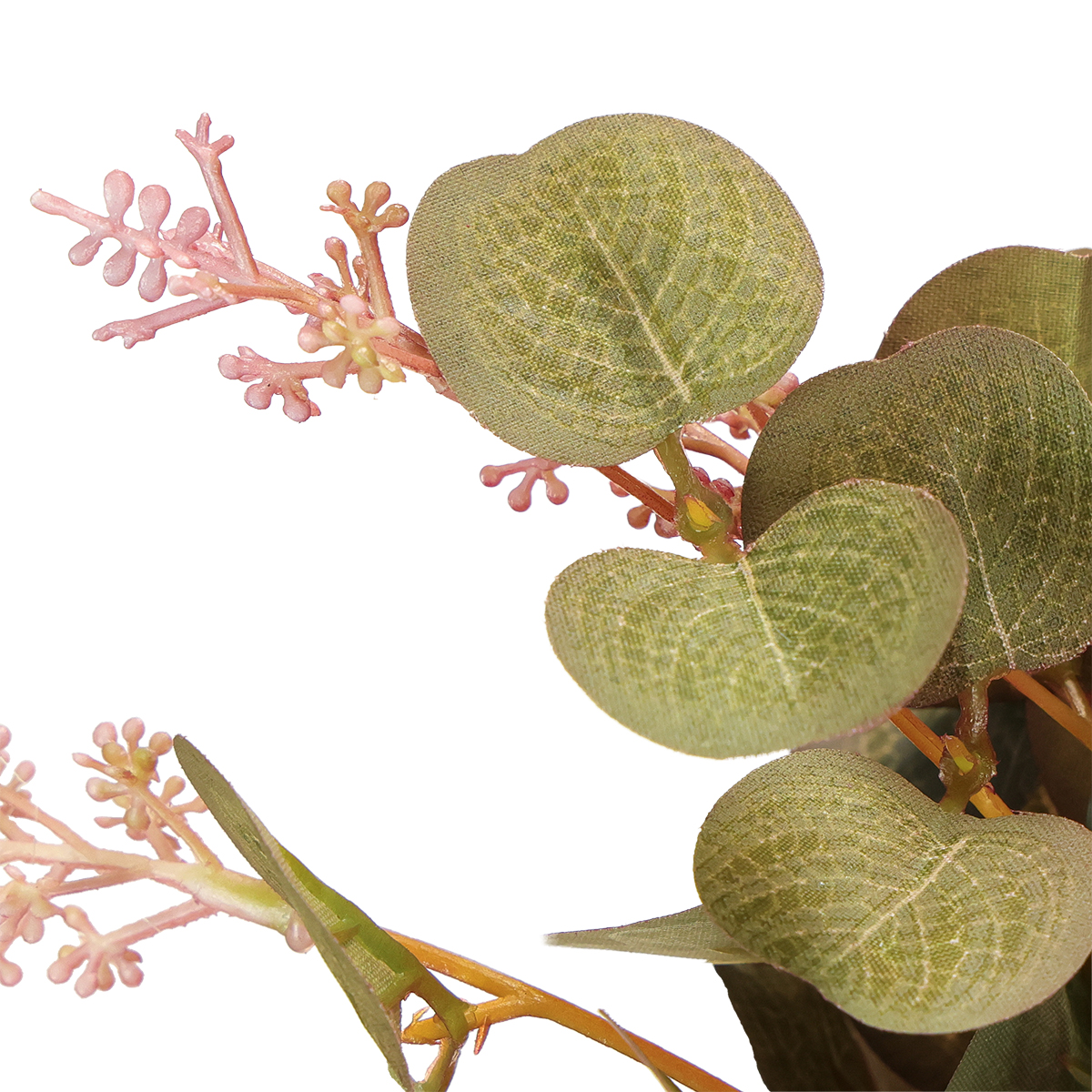 These artificial eucalyptus branches add a natural flair to any room – without any maintenance! Our eucalyptus branches with blossoms in a delicate pink are the ideal solution if you're looking for something charming yet easy to care for. Who hasn't experienced this: You bring a plant into your home and after a short time, it wilts away? But with these artificial plants, you won't have that problem. Whether in the living room, office, or as original wedding decorations – the design possibilities with eucalyptus are endless.