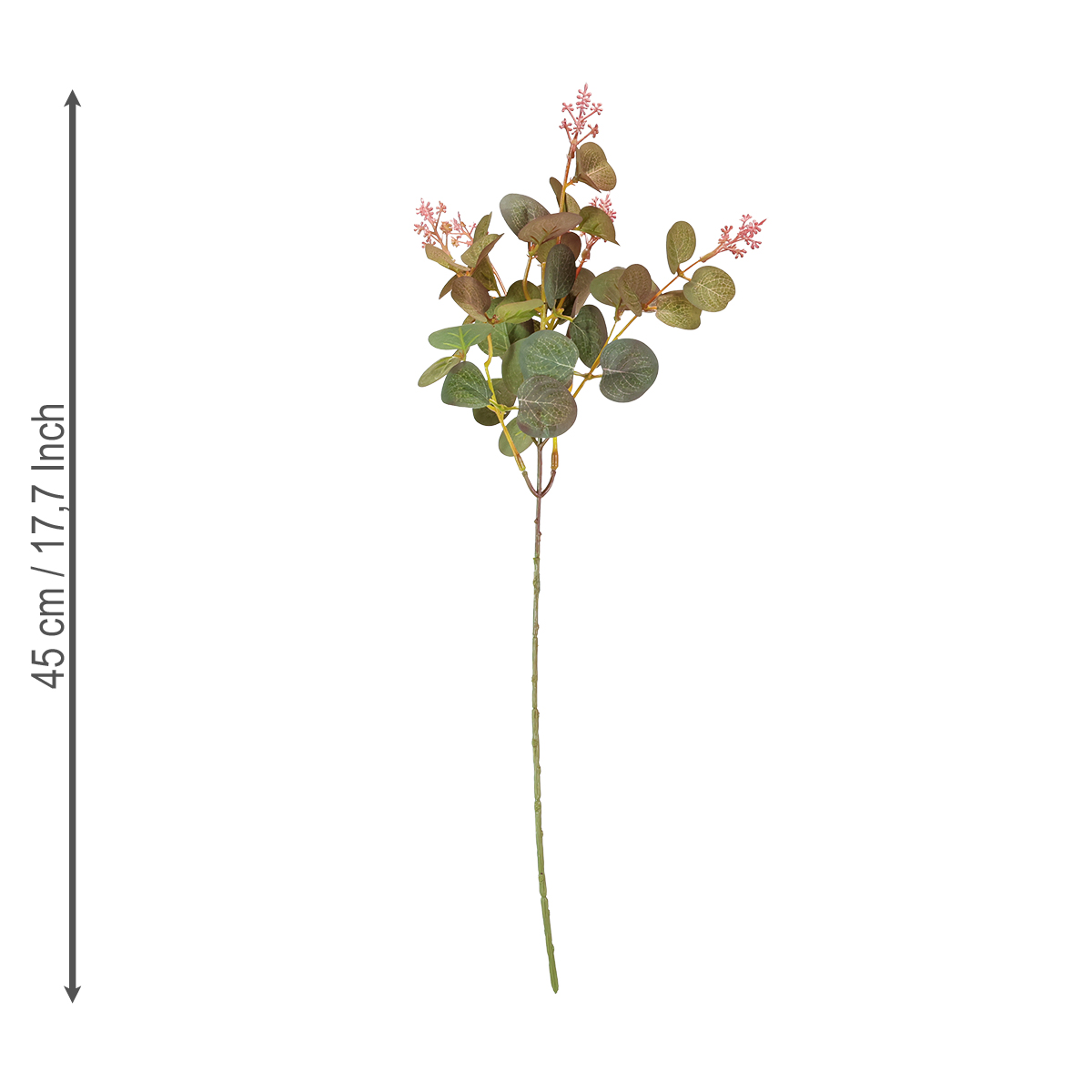 Product name: Artificial eucalyptus branches with pink flowers, 45 cm, 3 pieces