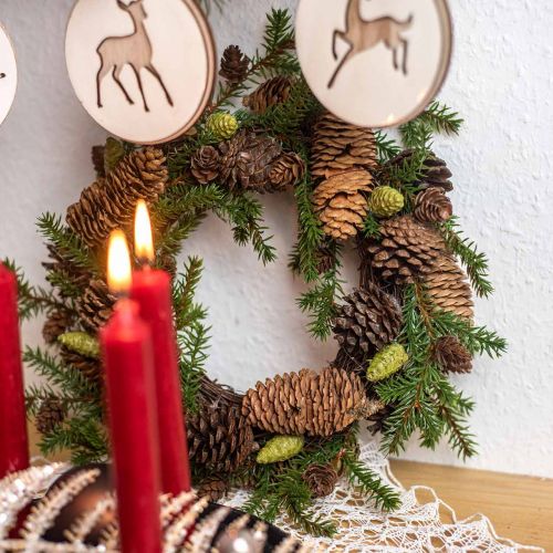 Another eye-catcher are the Christmas fir branches with cones. Rarely will you find artificial pine cones on an artificial pine branch. Because the elongated cones of the fir, which are rarely used as decoration in nature, are often replaced by the wonderfully round cones of the pine. Another alternative for fir branches are artificial pine branches. Their fine needles and the decorative small cones, which are also round, make an attractive table decoration for Christmas.