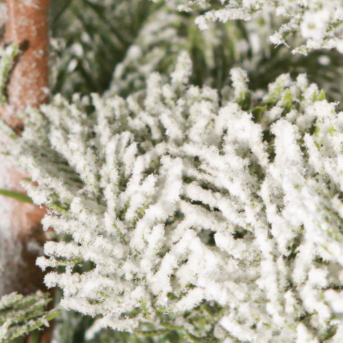 - Lifelike green needles with white snow effect