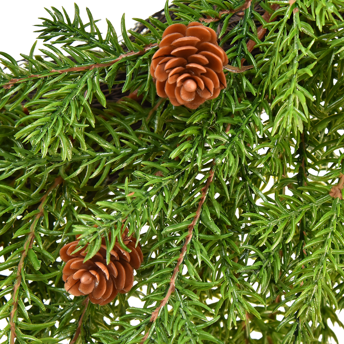 This magnificent green fir wreath will add a special touch to your celebration and its artificial nature makes it a long-lasting and easy-care alternative to real fir greenery. Each wreath is carefully decorated with small brown cones that are reminiscent of the winter forest and radiate natural warmth. The artificial vine wreath as a base offers stability and a natural look.