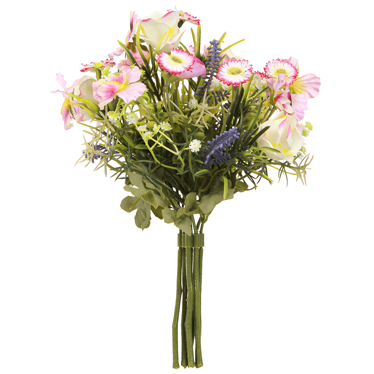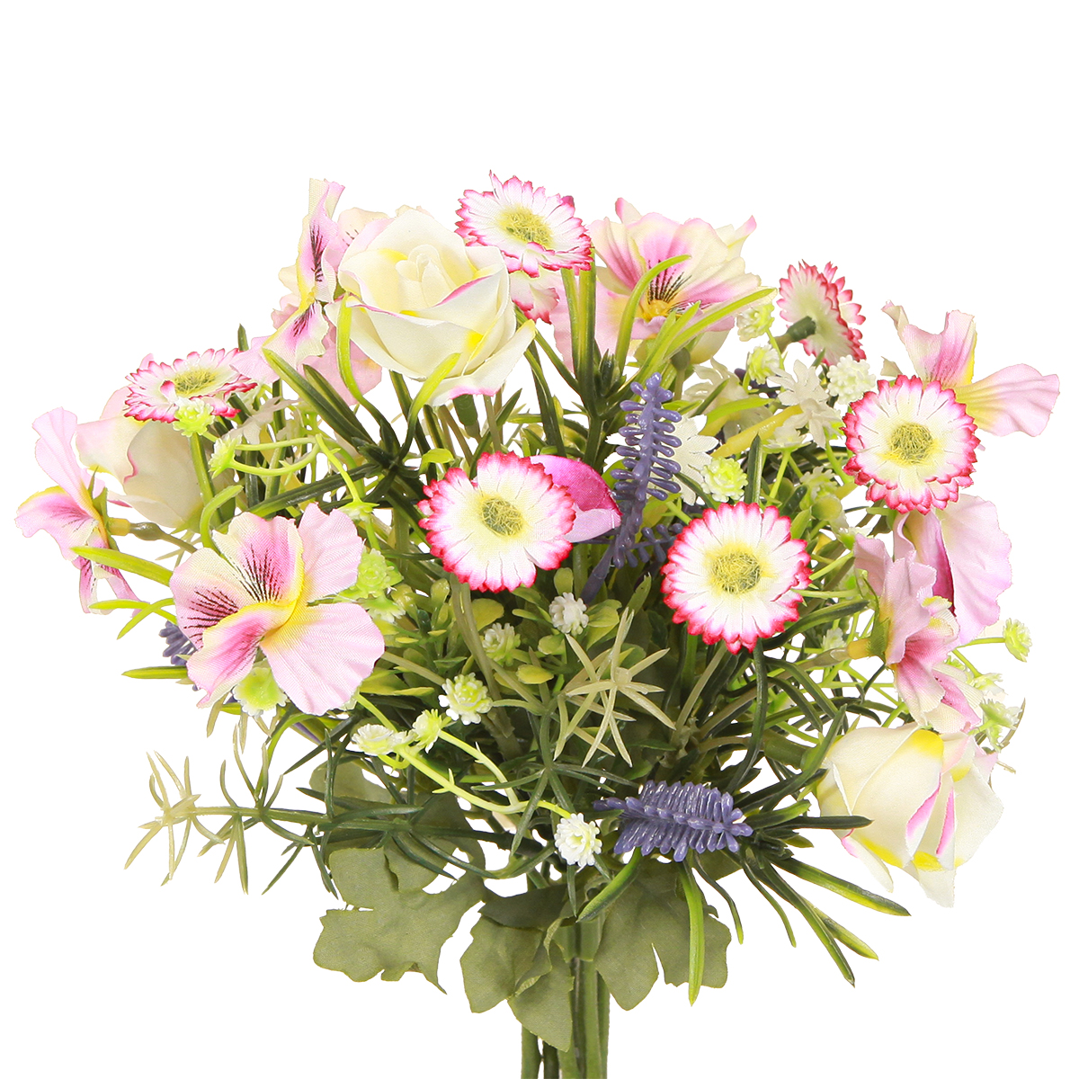 Artificial flower bouquet in cream, pink, purple and green for your stylish living room decoration