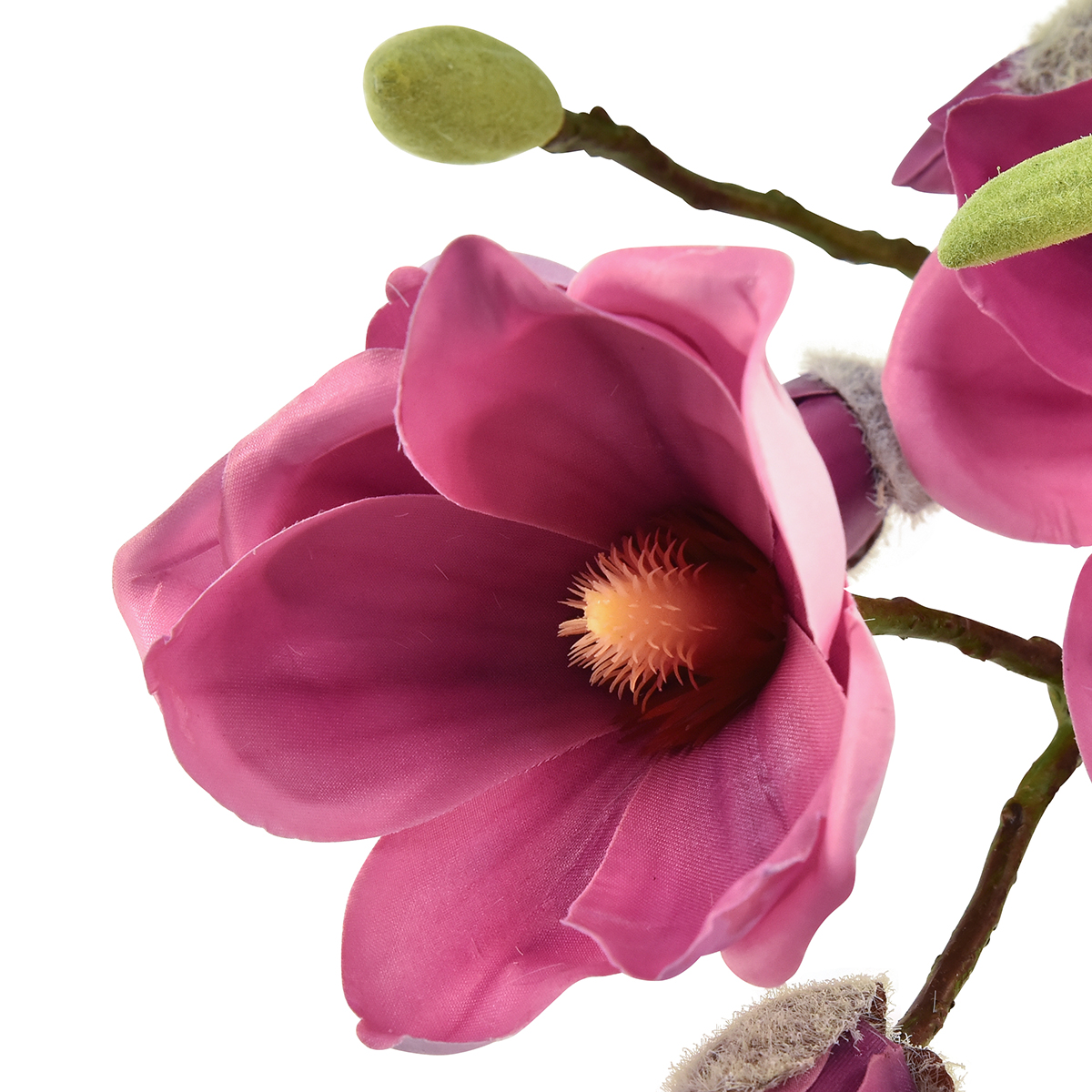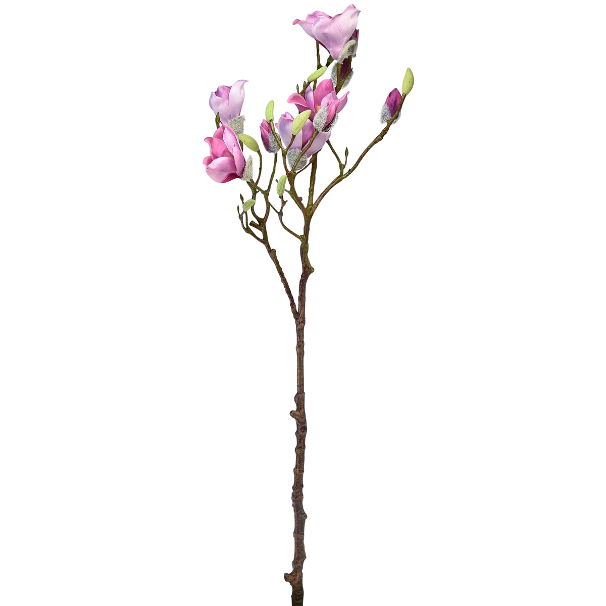 Whether as an artificial branch for a vase, attached to the wall or draped lying down as a table decoration or shop decoration, the large, extremely skilfully crafted magnolia branch looks extremely real and at the same time beautiful with its numerous pink and pink magnolia blossoms and buds!