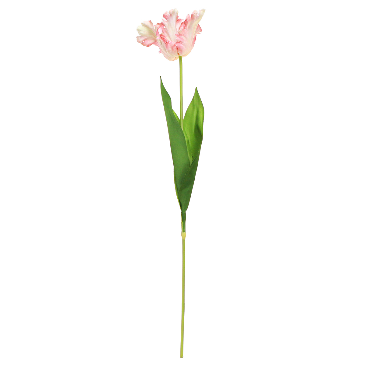 The petals show the white and delicate pink pattern of the garden flower and the characteristic flame-shaped calyx is also surprisingly realistically reproduced. The magnificent blossom is complemented by textile leaves in vibrant green, creating a realistic overall picture. The long stems allow you to place the tulips in different arrangements, be it in a vase or as part of a larger floral display.