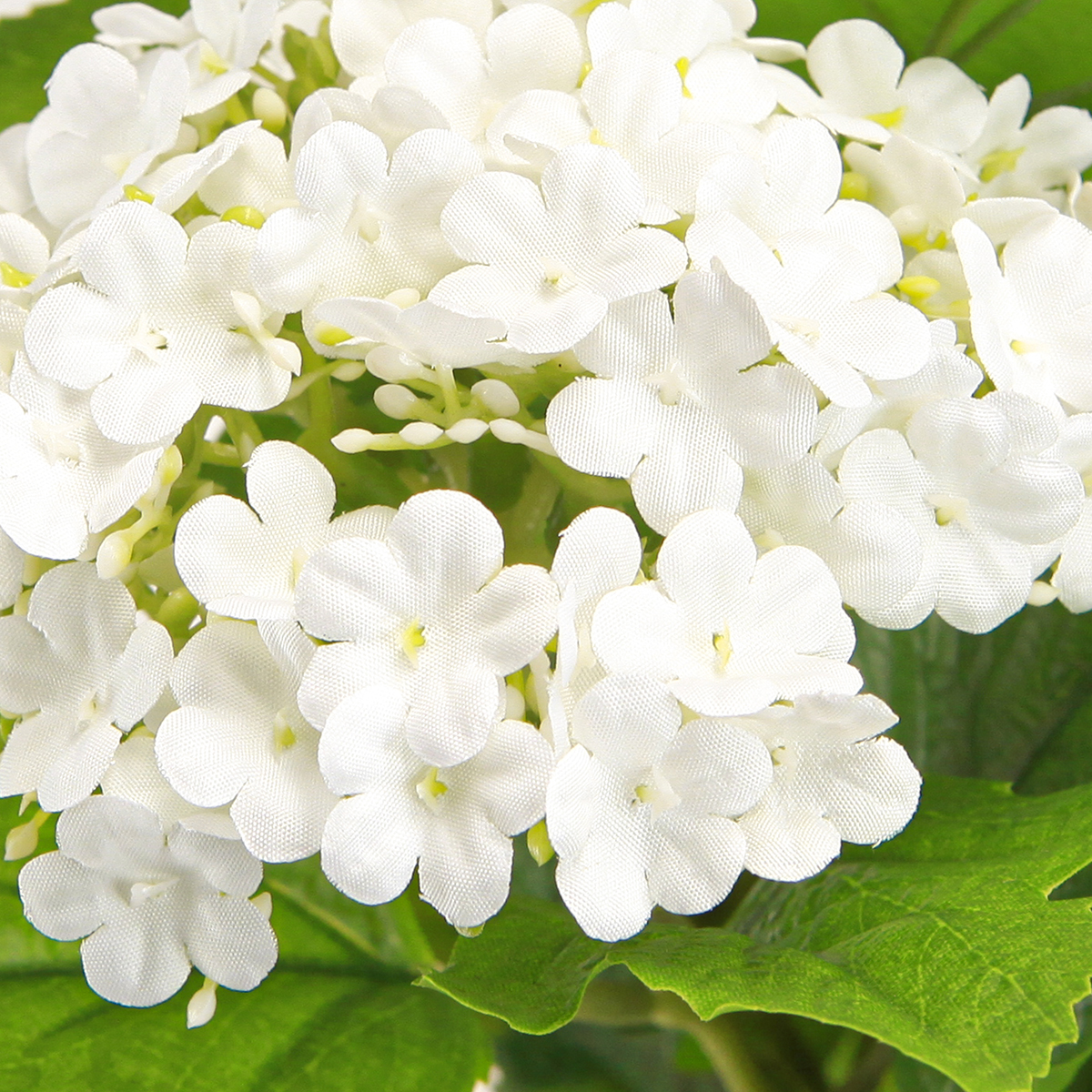 The snowball flower, also known as viburnum, represents purity and elegance. The white color of these artificial flowers brightens up any room and conveys feelings of peace and clarity. It offers an ideal decoration for celebratory occasions and its color symbolizes innocence and harmony. In the language of flowers, the snowball represents happiness and reconciliation, making it a charming choice for gifts or decorations. With no expiration date, these flowers bring lasting joy and beauty to your environment.