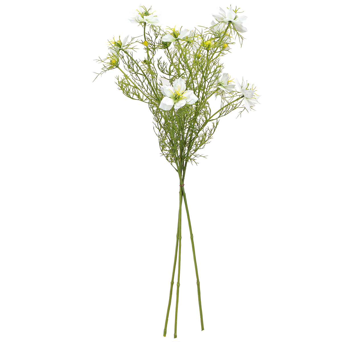 Artificial Flowers White Nigella Virgin in Green 67cm 3 Pcs