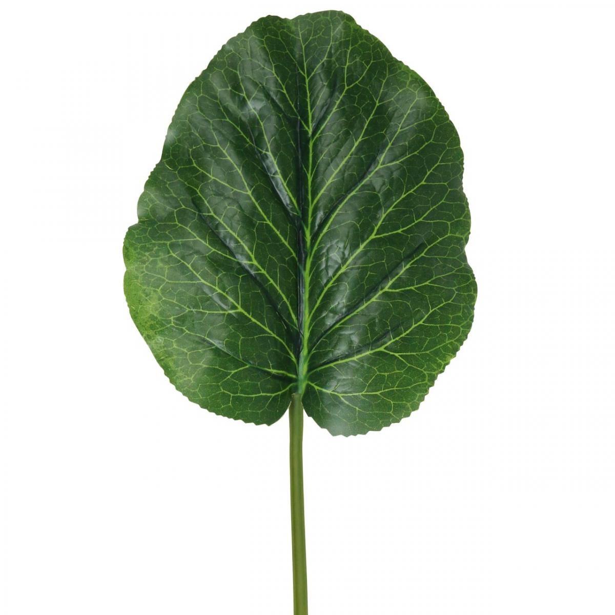 The decorative leaf can be effectively set up in a vase with artificial flowers or arranged lying down as a plant decoration. With the artificial bergenia leaf, also known as elephant ear, you can skillfully frame a decorative bouquet, for example with callas or other exotic artificial plants. The leaf replaces cut green or a decorative branch. Since the artificial bergenia looks real, it is also suitable for a larger green plant decoration in the atrium or on a counter.
