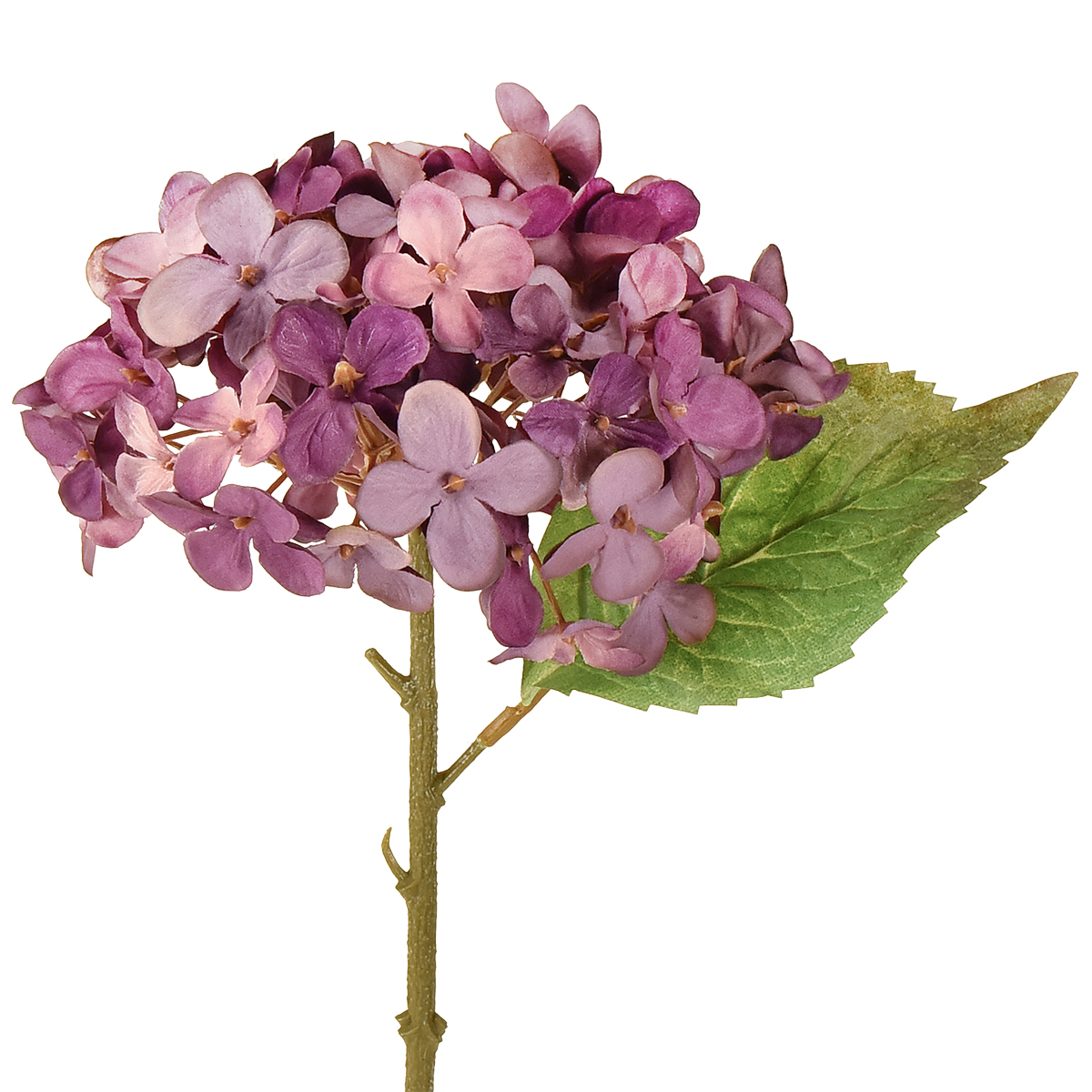 Our purple hydrangea artificial flowers offer a perfect blend of elegance and versatility. At approximately 34 cm tall, these artistic replicas of Hydrangea macrophylla in purple and dusty pink add a touch of style to any room. Whether as summer table decorations or autumnal ornaments, these hydrangeas refresh living and office spaces alike. The blossoms boast magical shades ranging from delicate dusty pink to dark violet, making them absolute eye-catchers. The flexible stem with a metal core provides stability, while the seemingly slightly dried-out blossoms perfectly capture the late summer flair. These decorative flowers are ideal for a variety of uses, from living room decorations to wedding decorations to event arrangements. Discover the wide range of possible uses for these impressive artificial hydrangeas, which shine as a timeless decorative element in both classic and modern interior styles.