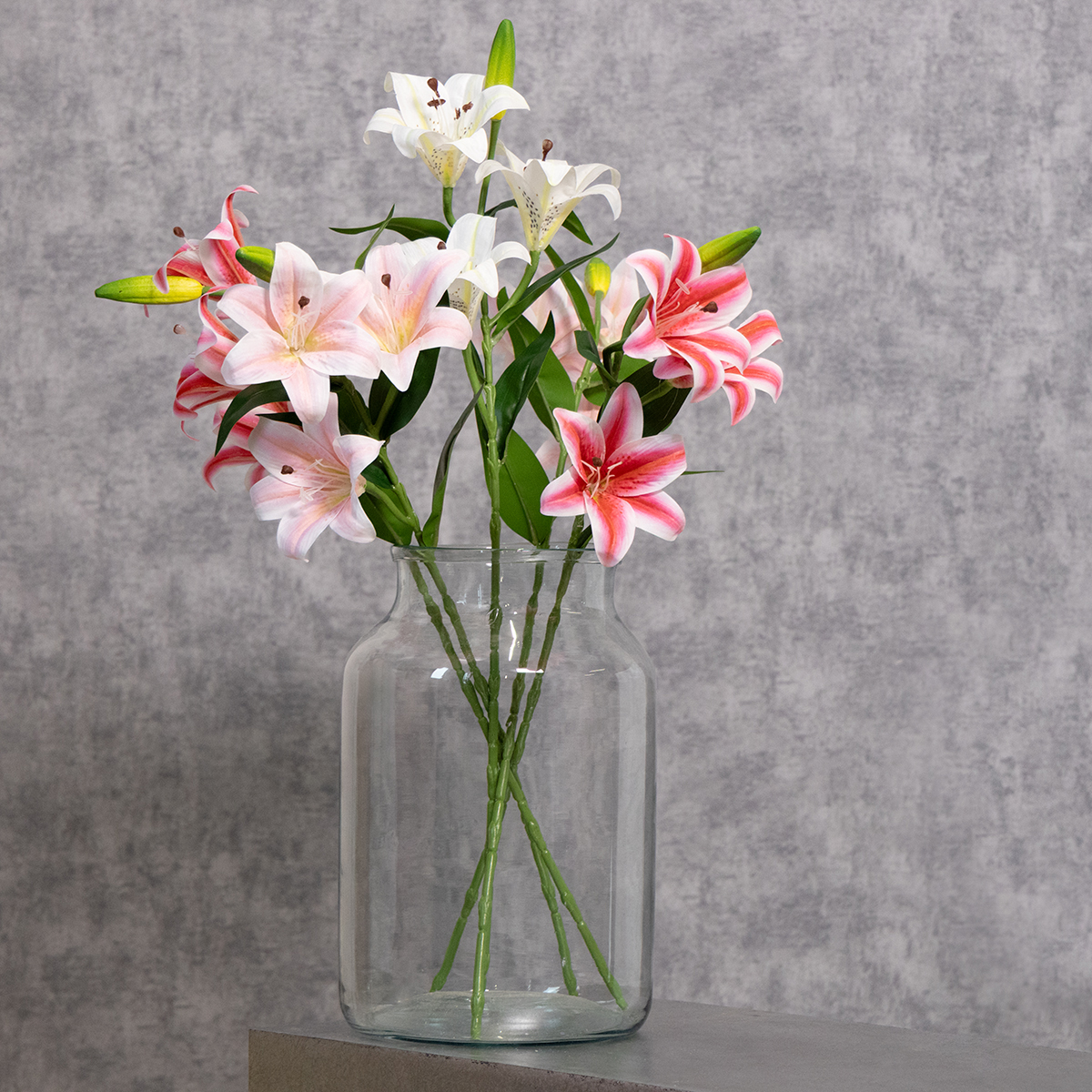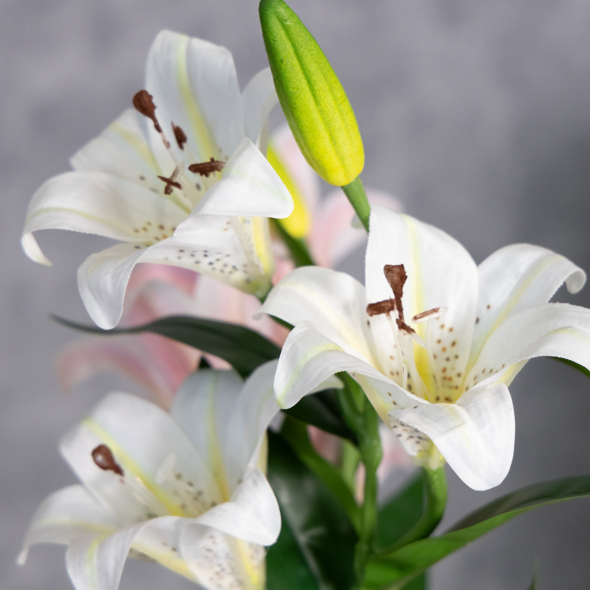 Whether for stylish living room decor, chic office decoration, or impressive wedding arrangements: these lilies are true all-rounders. Those who prefer a simple and elegant look can combine them with white or cream-colored accessories; for an exciting contrast, bold colors like dark green, burgundy, or gold are recommended. Let your creativity run wild and make these elegant lilies the focal point of your decoration!