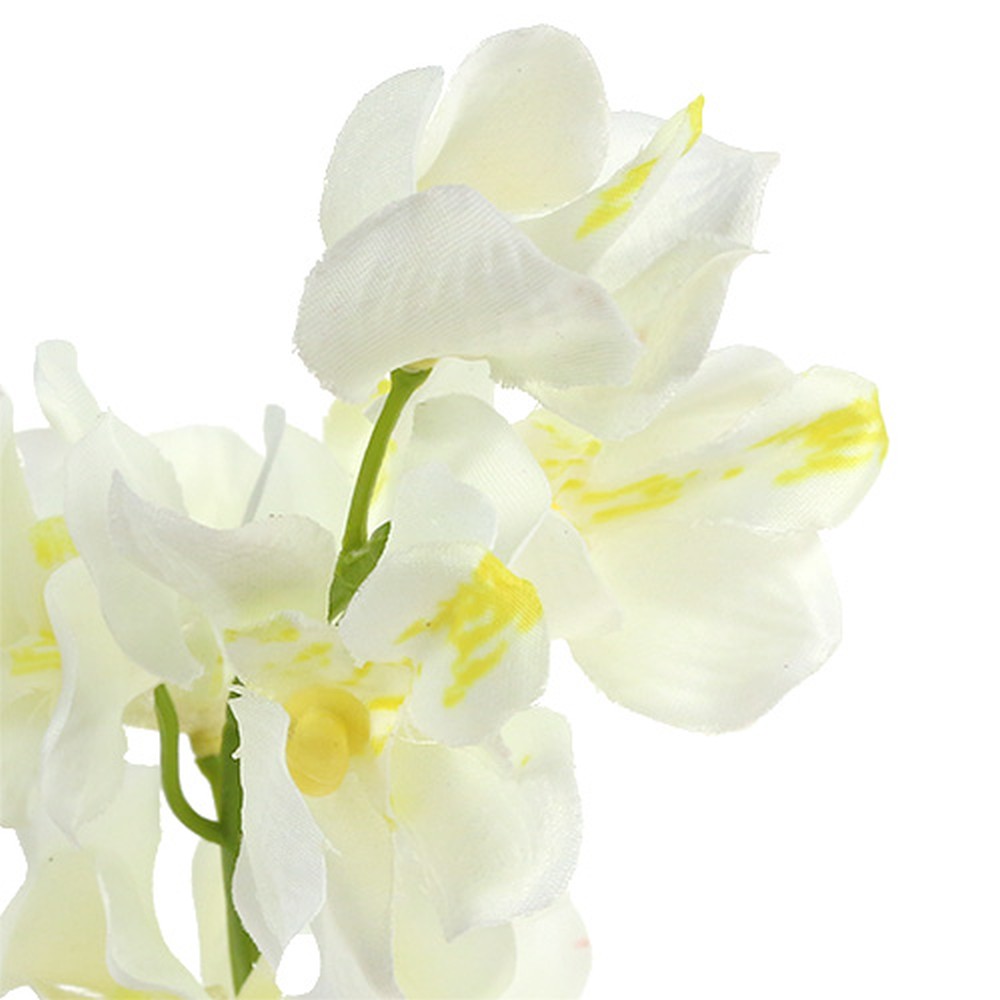 The artificial orchid in cream is delivered in a bundle of 3 pieces. The plant has a length of about 50 centimeters and a flower diameter of about 5 centimeters.