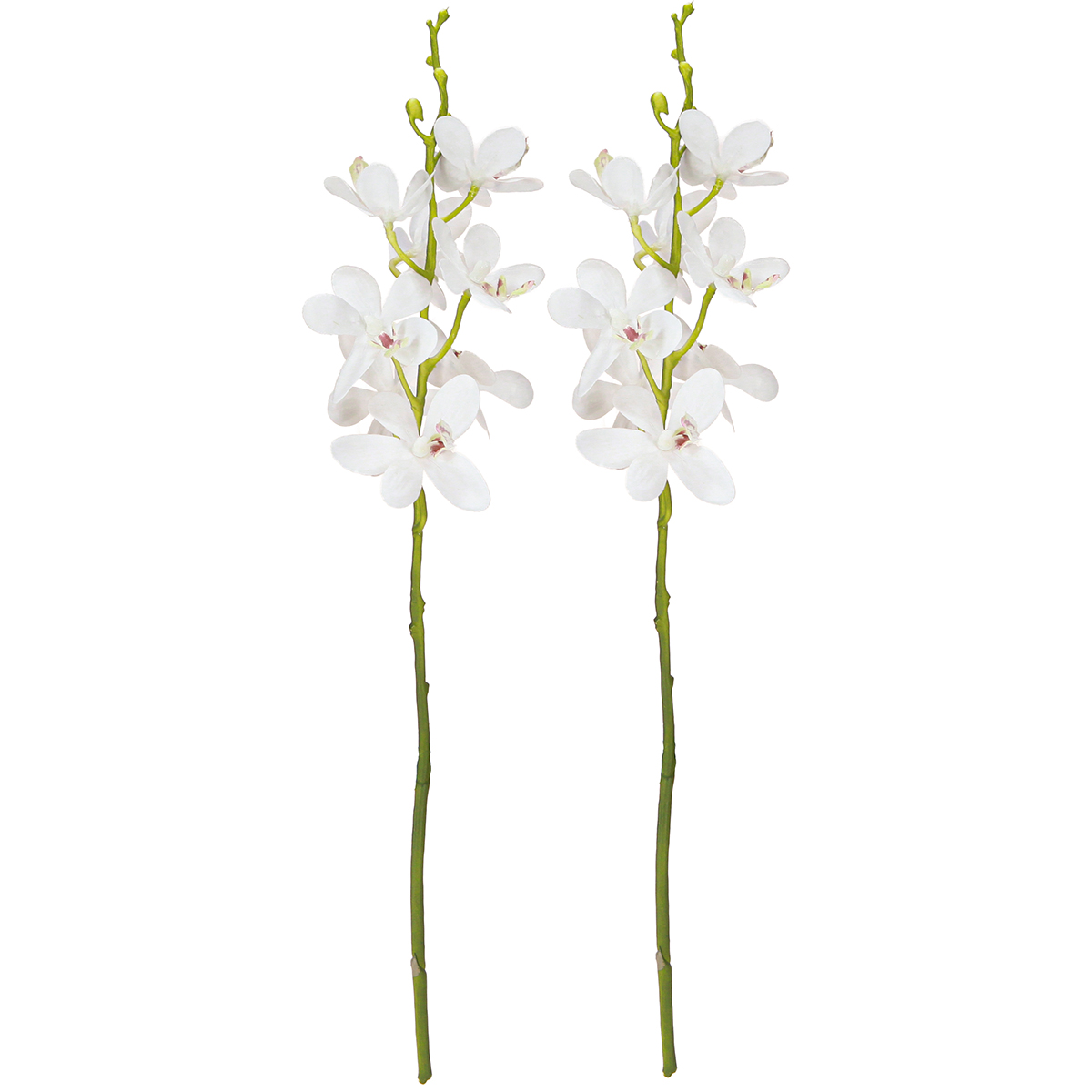 - 2 green artificial orchid branches with 8 snow-white flowers each