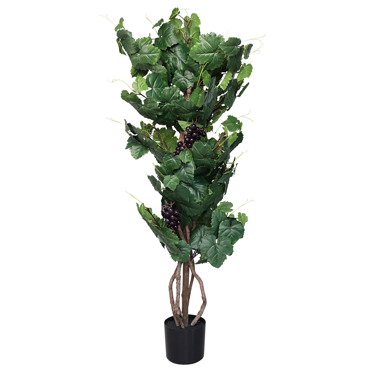 The coloring of the leaves and grapes in combination with the simple black pot indicates a modern to classic style that fits effortlessly into many interior design styles. Its durable material ensures that you will enjoy this artificial vine with grapes for a long time without having to worry about watering or pruning.