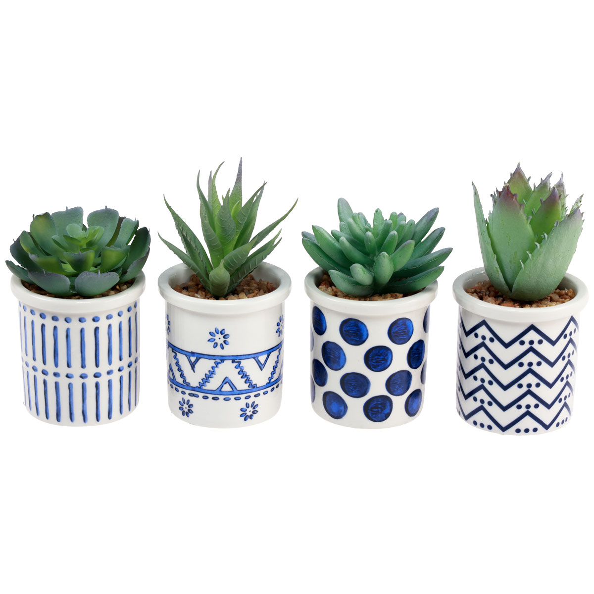 The artificial succulents with the beautifully patterned flower pots are a wonderfully long-lasting artificial flower decoration that looks beautiful in any room.