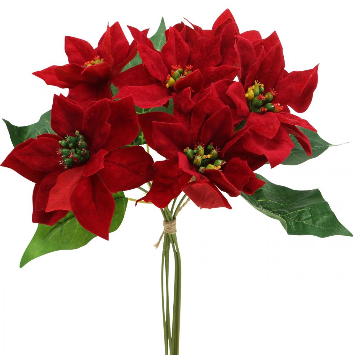 Artificial Poinsettia Red Silk Flowers Decoration 6 pcs in bunch