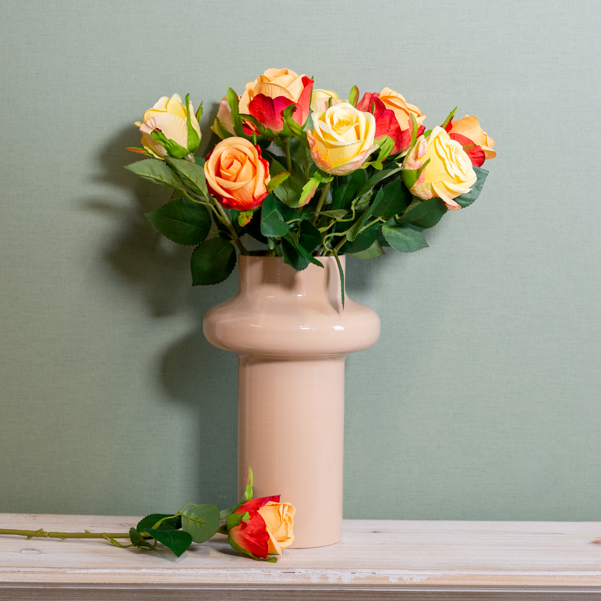Who doesn't love creating a stylish and inviting home? These high-quality artificial roses in warm orange will bring a true highlight to your living space. Perfect for the living room, dining room, or even the office – this artificial rose bouquet adds a special touch to any room. Have you ever experienced how a lovingly arranged decorative bouquet can enhance the atmosphere? What's more, this beauty stays fresh and is easy to care for! No wilting, no watering, just pure enjoyment. Let yourself be inspired and create an environment that reflects your personality. Whether as an elegant table decoration or a fresh accent in the bathroom, these artificial flowers leave nothing to be desired. The timeless look harmonizes beautifully with modern, classic, and Scandinavian interior design styles. Try it out – you'll be surprised by how much charm these roses bring to your home!