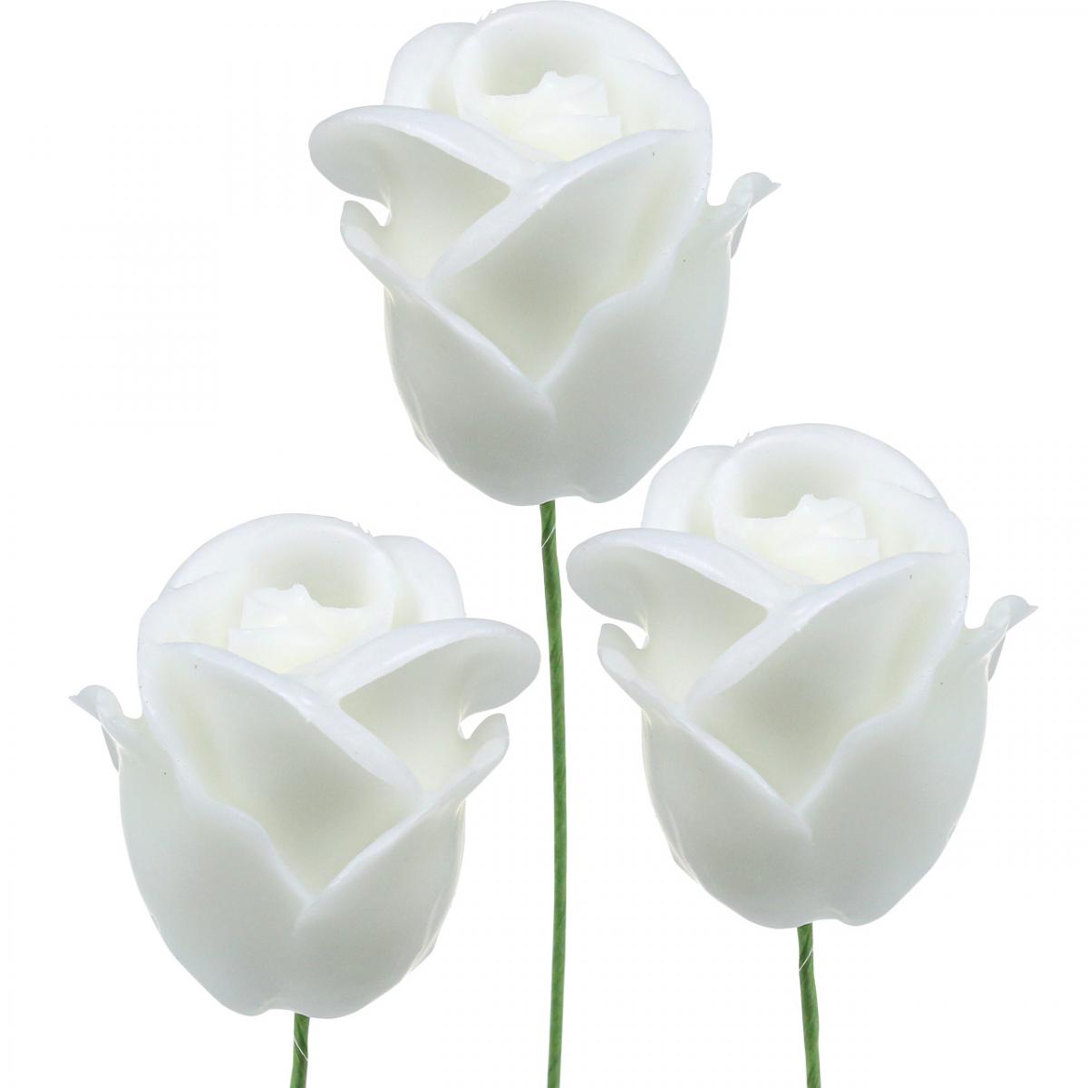 Artificial roses white wax roses decorative roses wax Ø6cm 18 pcs